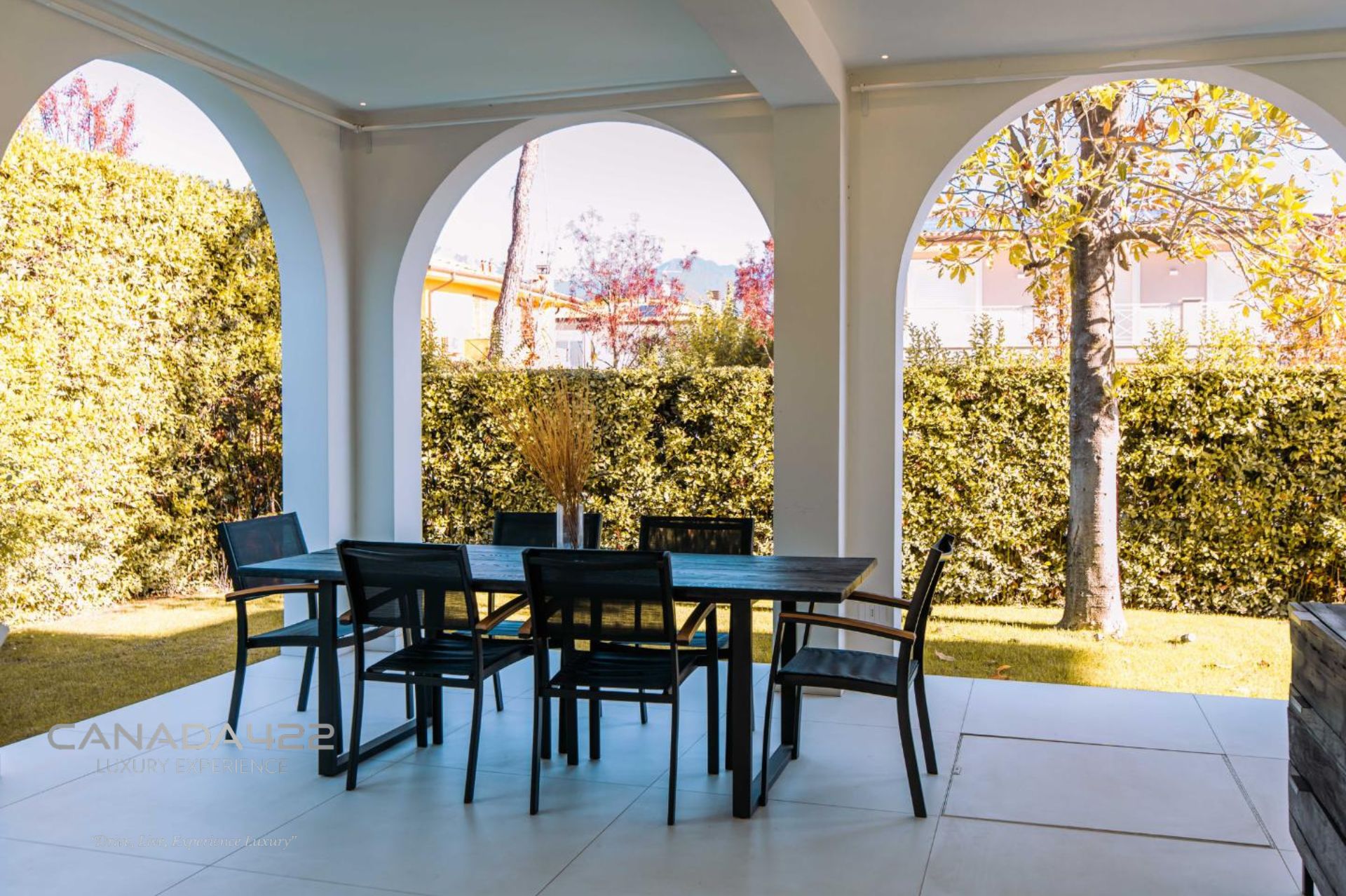 - Outdoor spaces: private garden, terrace, lounge area, summer kitchen
