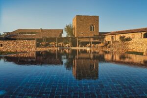 Spread over about eighty hectares among vineyards, olive groves, woods and pastures, the property was the subject of a painstaking restoration that lasted over ten years. Every element in stone, iron and wood was handcrafted by Italian craftsmen, using local natural materials and traditional techniques. The presence of works and collaborations with internationally prominent contemporary artists further enriches the unique character of the mansion.