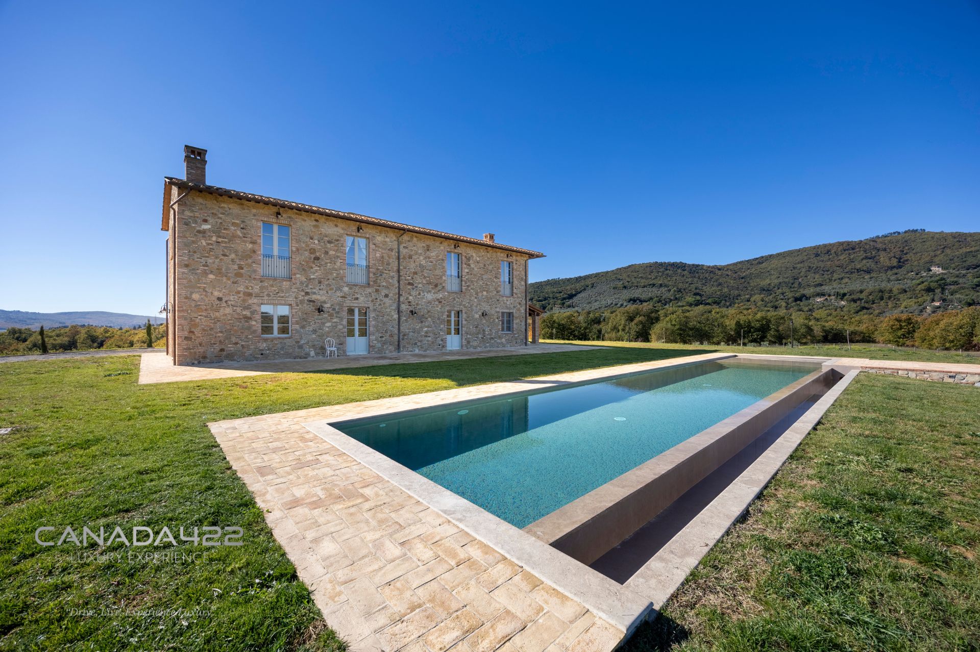 This luxury residence for sale represents a rare opportunity in the Umbrian real estate market: a newly built stone farmhouse with impeccable finishes and unparalleled panoramic views, ideal as a primary residence or as an exclusive second home for those wishing to experience Umbria at its most sophisticated.