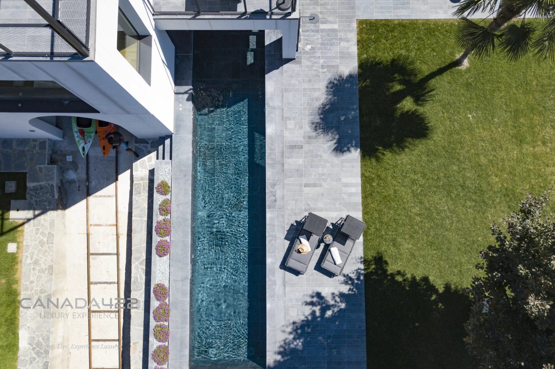 The villa is ideal for luxury stays, thanks to the private pool measuring 12 x 2.5 meters, the equipped wellness & fitness area, and its spacious indoor and outdoor areas designed to offer an exclusive and memorable living experience.